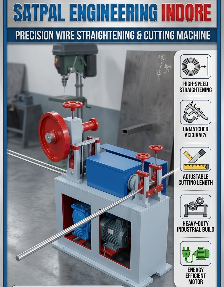 π§ Boost Your Production Efficiency with High-Performance Wire Straightening Machines in Indore! Looking for a reliable solution to improve wire processing accuracy and speed? At Satpal Engineering, we specialize in manufacturing robust and precision-engineered **Wire Straightening Machines** designed to meet modern industrial needs. β **Why Choose Our Wire Straightening Machines?** β High-speed performance for increased productivity β Precision straightening for superior output quality β Durable construction with low maintenance β Suitable for multiple wire types and sizes β Energy-efficient and cost-effective solutions π Based in Indore, we proudly serve industries across Madhya Pradesh and all over India with trusted engineering solutions. Whether youβre in construction, manufacturing, or fabrication, our machines help streamline your workflow and reduce material wastage. πΌ **Applications Include:** β’ Construction steel wire processing β’ Binding wire straightening β’ Industrial wire production β’ Fabrication units π Get in touch with Satpal Engineering today to upgrade your operations with advanced wire straightening technology! #WireStraighteningMachine #IndoreIndustry #SatpalEngineering #ManufacturingIndia #IndustrialMachines #MakeInIndia #EngineeringExcellence